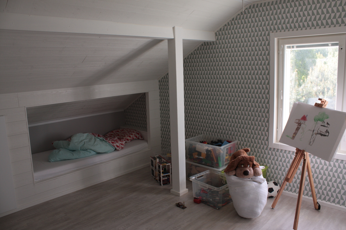Teimme hirsitalon kaikki sisätyöt Marjaniemeen 2018 runko toimituksen jälkeen.