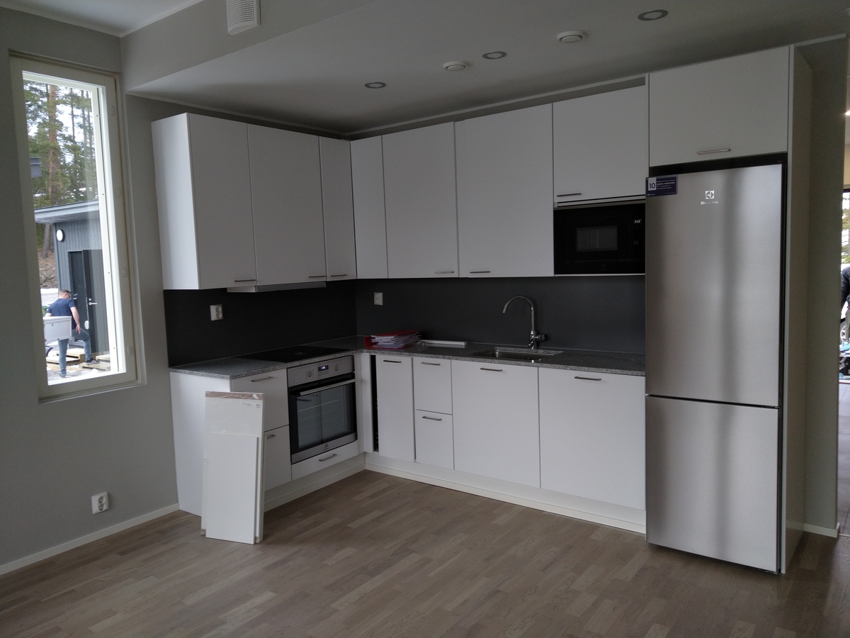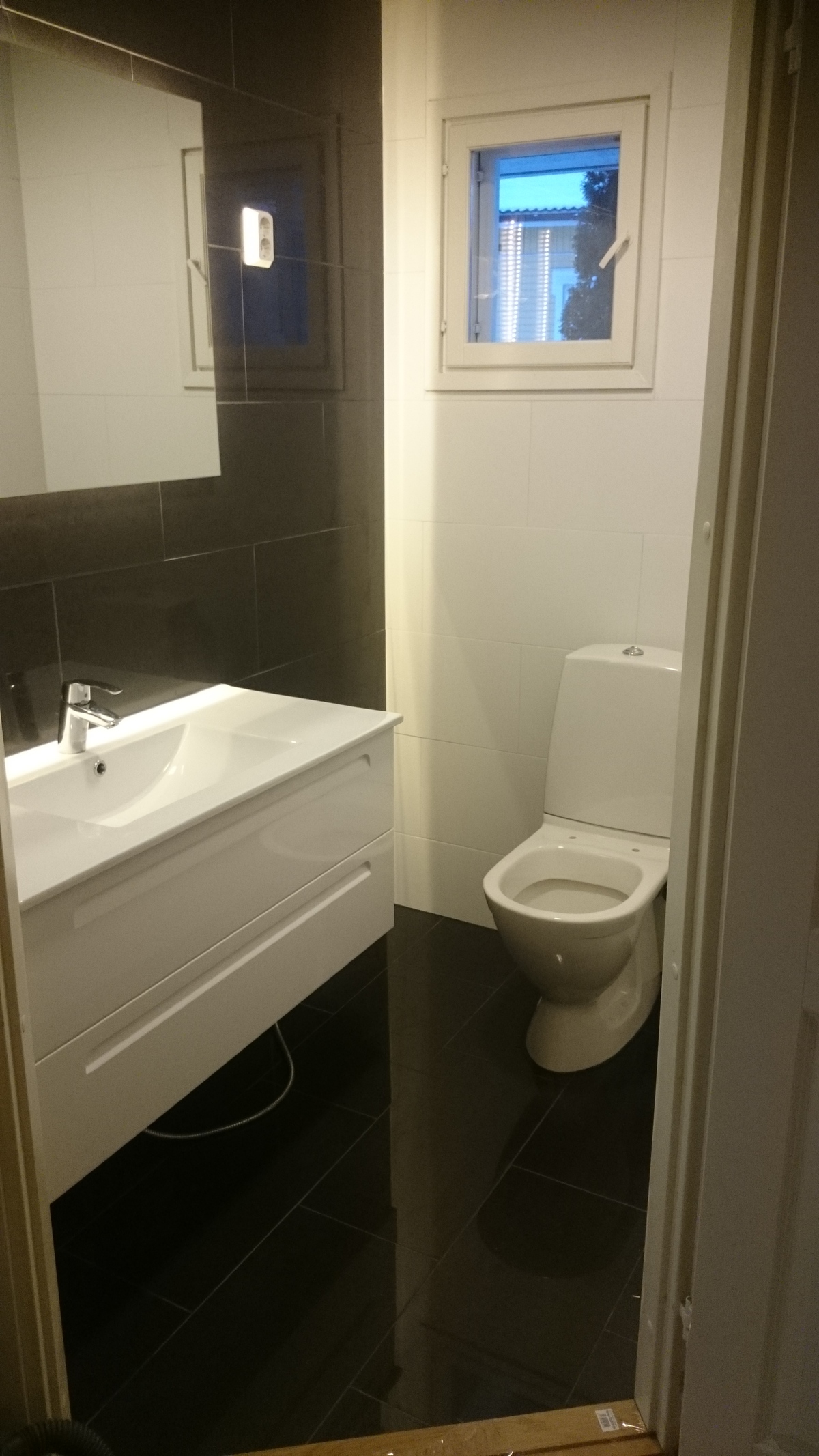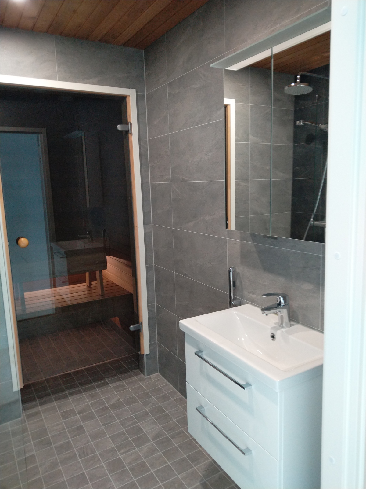 Teimme täydellisen sisäremontin omakotitaloon Espooseen vuonna 2017. Kph, sauna, Wc, keittiö ja lattiat